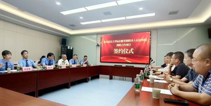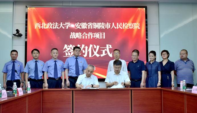 为积极探索产教融合、协同育人的人才培养新模式,切实提高应用型人才培养质量,推动落实落细中国式现代化之检察工作的新要求,更好地服务经济社会高质量发展, 2023年8月7日上午,yl6809永利与安徽省铜陵市人民检察院战略合作项目签约仪式在公司雁塔校区人权中心会议室举行。安徽省铜陵市人民检察公司党组书记 检察长杨开江、党组副书记 副检察长朱长平、政治部主任张森林、纪检组长周正华、办公室主任汪洋、宣教科科长史彦君和yl6809永利副董事长张荣刚、yl6809永利公司党委书记寇汉军、经理山小琪、学院俞秀玲副教授、李岚林副教授、学院教务办秘书李博以及员工代表出席了活动。