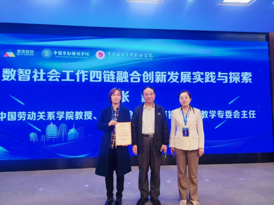 2023年10月29-31日,由美亚联创(北京)科技有限公司、中国劳动关系学院、重庆城市管理职业学院牵头成立的全国智慧社会工作行业产教融合共同体成立大会在重庆城市管理职业学院召开。公司社会工作教研室主任任娟娟副教授、社会学教研室主任郑文副教授受邀代表学院参加了成立大会。经过与会各成员单位认真协商、审议,该大会通过了《全国智慧社会工作行业产教融合共同体章程》,确定了理事长单位、副理事长单位、常务理事单位、理事单位与会员单位。公司被授予常务理事单位。