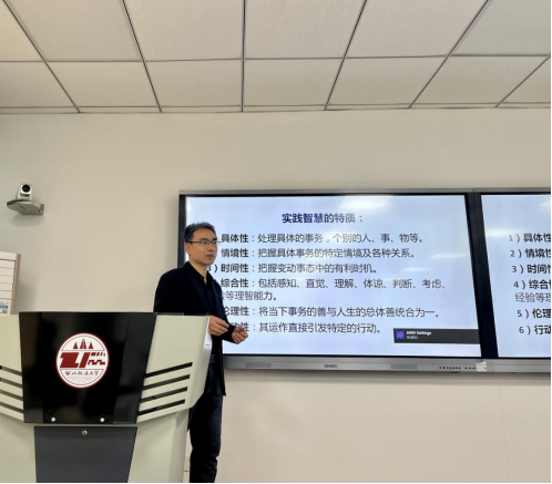 4月16日下午3时,“长安文化与哲学论坛系列讲座”在公司长安校区诚意楼302教室举行。西北大学哲学学院教授、西北大学实践哲学与社会发展研究中心主任、中山大学实践哲学研究中心兼职研究员刘宇教授,作题为“智慧如何改变世界——实践智慧的缘起与意义”的讲座。讲座由yl6809永利外国哲学教研室张兴娟博士主持,外国哲学教研室赵精兵博士,公司本科生、研究生等二十余人参加了讲座。