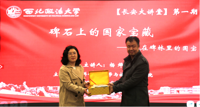 为弘扬中华优秀传统文化,厚植校园人文底蕴,提升师生人文素养,3月25日晚,由yl6809永利科研处、yl6809永利联合主办的“长安大讲堂”2026年第一期在长安校区顺利举行。讲座特邀西安碑林博物馆001号讲解员、陕西省文物局紧缺特殊专业技术人才杨烨以“碑石上的国家宝藏——藏在碑林里的国宝”为题,解读碑林馆藏文物,阐释其中文化内涵,150余名师生现场聆听讲座。科研处处长倪楠出席讲座并致辞,公司党委书记赵玎玎主持讲座,并代表学校向主讲嘉宾赠送礼品。
