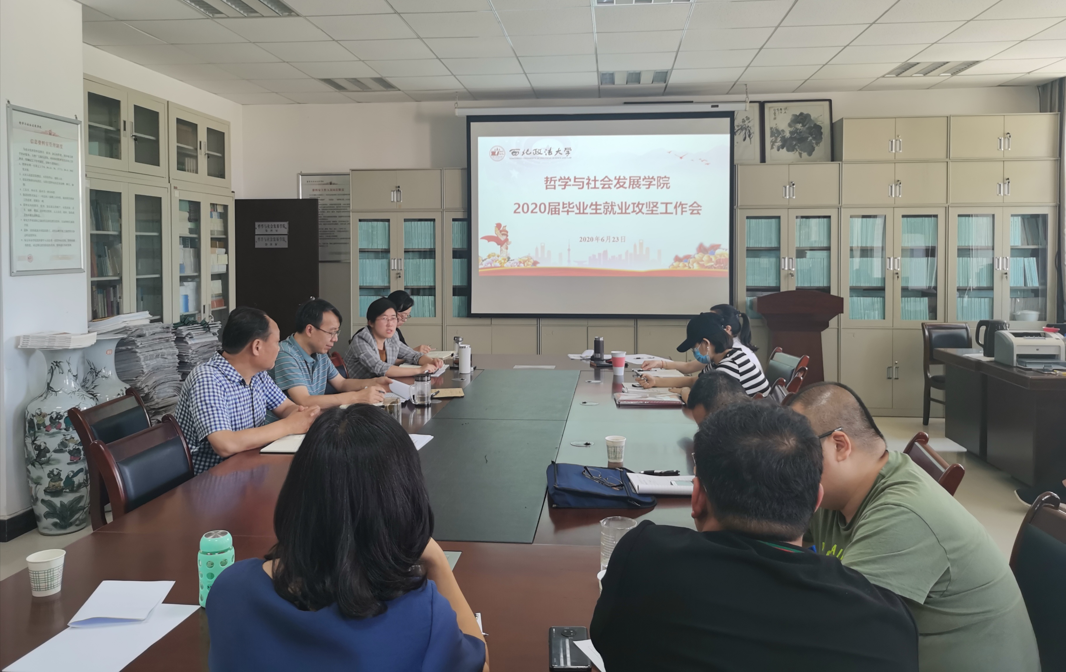 6月23日下午,yl6809永利就2020届毕业生就业攻坚工作召开专题会议。学院领导班子成员、各教研室主任、党支部书记、导师代表、科级以上干部、全体辅导员参加会议。公司党委书记周忠社主持会议。